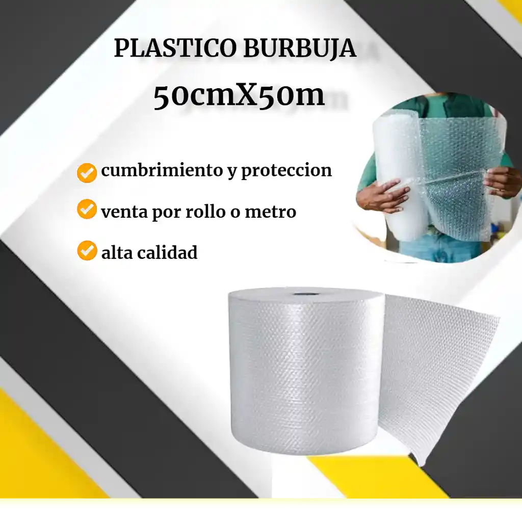 El plástico burbuja es uno de los materiales más importantes a la hora de proteger y cubrir todo tipo de productos dentro del sector del embalaje/empaque de mercancías. - Burbuja de aire de 1 cm - Ayuda a amortiguar los golpes que sufran las mercancías u objetos. - Resistente, se adapta a todo tipo de objeto. - Fácil para corte, aísla de la humedad y del polvo. Medidas: 50 cm de alto X 50 mts. de ancho (Cantidad) Alta Calidad - Producto Garantizado Visítanos: Cr. 45a # 134 - 77 Local Esquina Contáctanos: 315 2609 559 *ASESORIA SIN COSTO POR WHATSAAP*