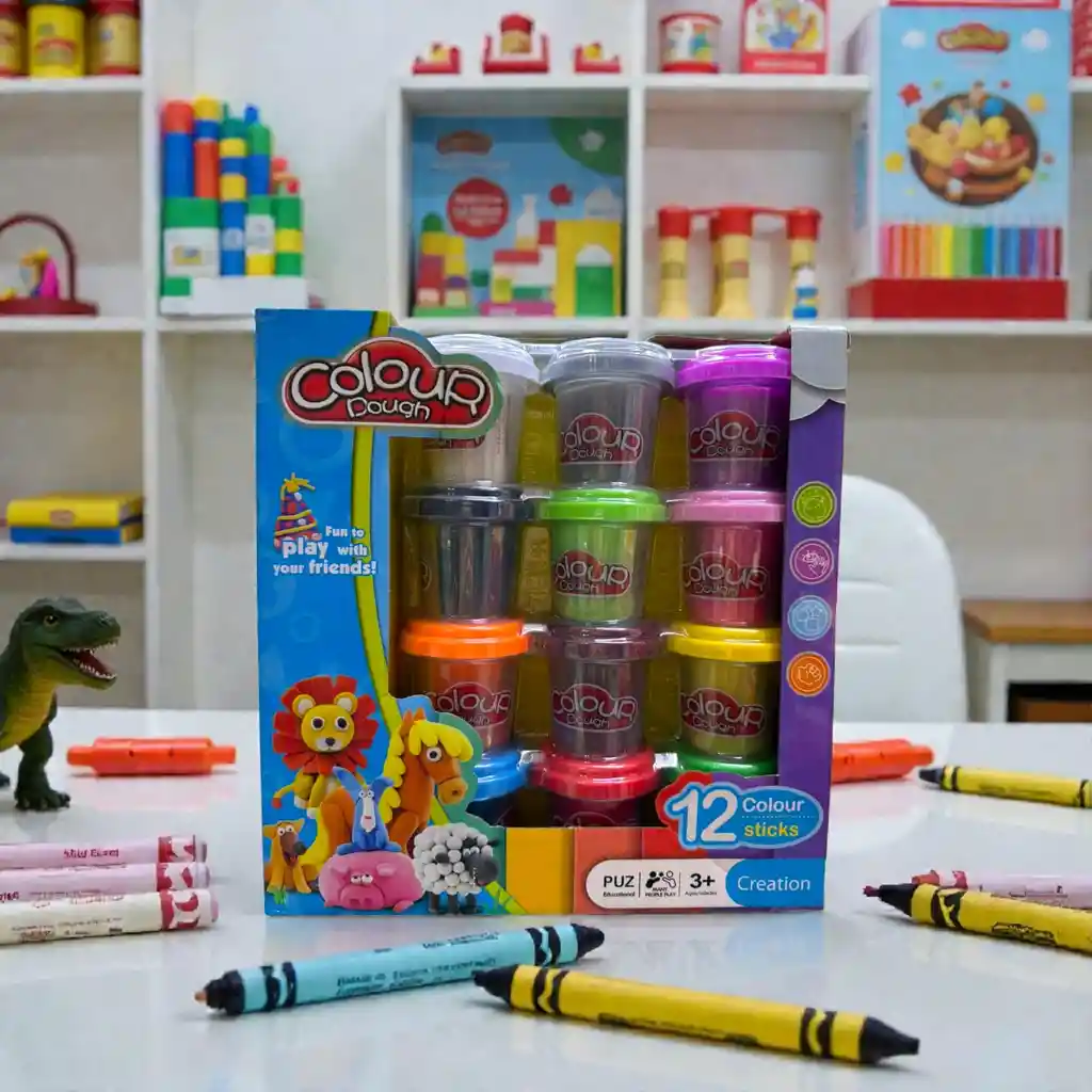 Hermoso set de 12 de plastilinas de diferente color, para que puedas combinarlos y crear todo tipo de figuras con los 3 moldes que incluye. Las plastilinas son 100% no toxicas para darle mas seguridad a los niños pequeños. Cada una viene en su recipiente sellado de 6cm alto por 5 de diámetro y están presentados en una llamativa caja, ideal para un regalo. Diviértete creando y moldeando figuras con esta increíble plastilina didáctica, explora tu creatividad y comparte con tu familia y amigos. Marca: Colour Dough Referencia: Set x12 plastilina Grande Tamaño Recipiente Plastilina: 6 alto x 5 diámetro Aproximadamente Tamaño Caja: 26 x 24 cm Incluye: - Set x12 plastilina - 1 Empaque - 3 Moldes