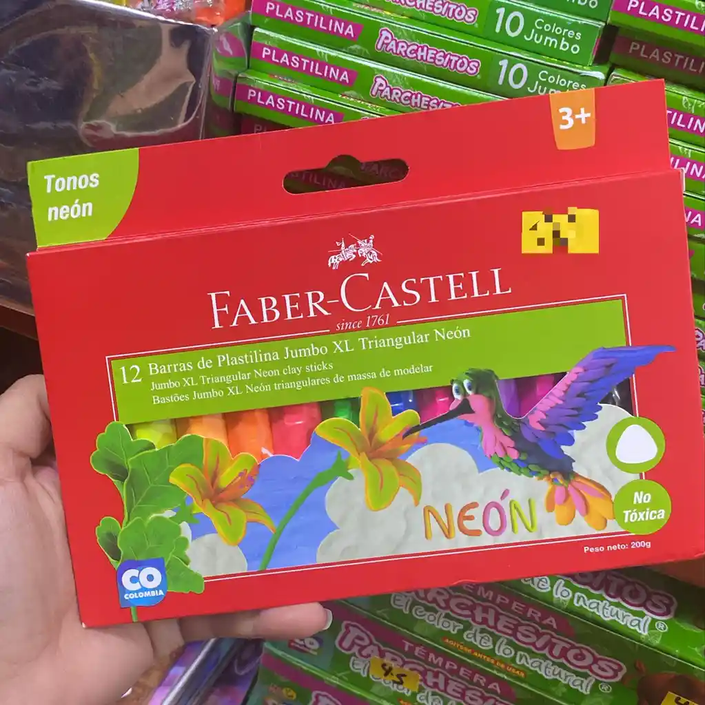 PLASTILINA FC JUMBO XL NEON X12 Plastilinas Faber Castell Neón. Paquete de 12 unidades Gran tamaño XL triangulares. Ideal para niños y su educación.