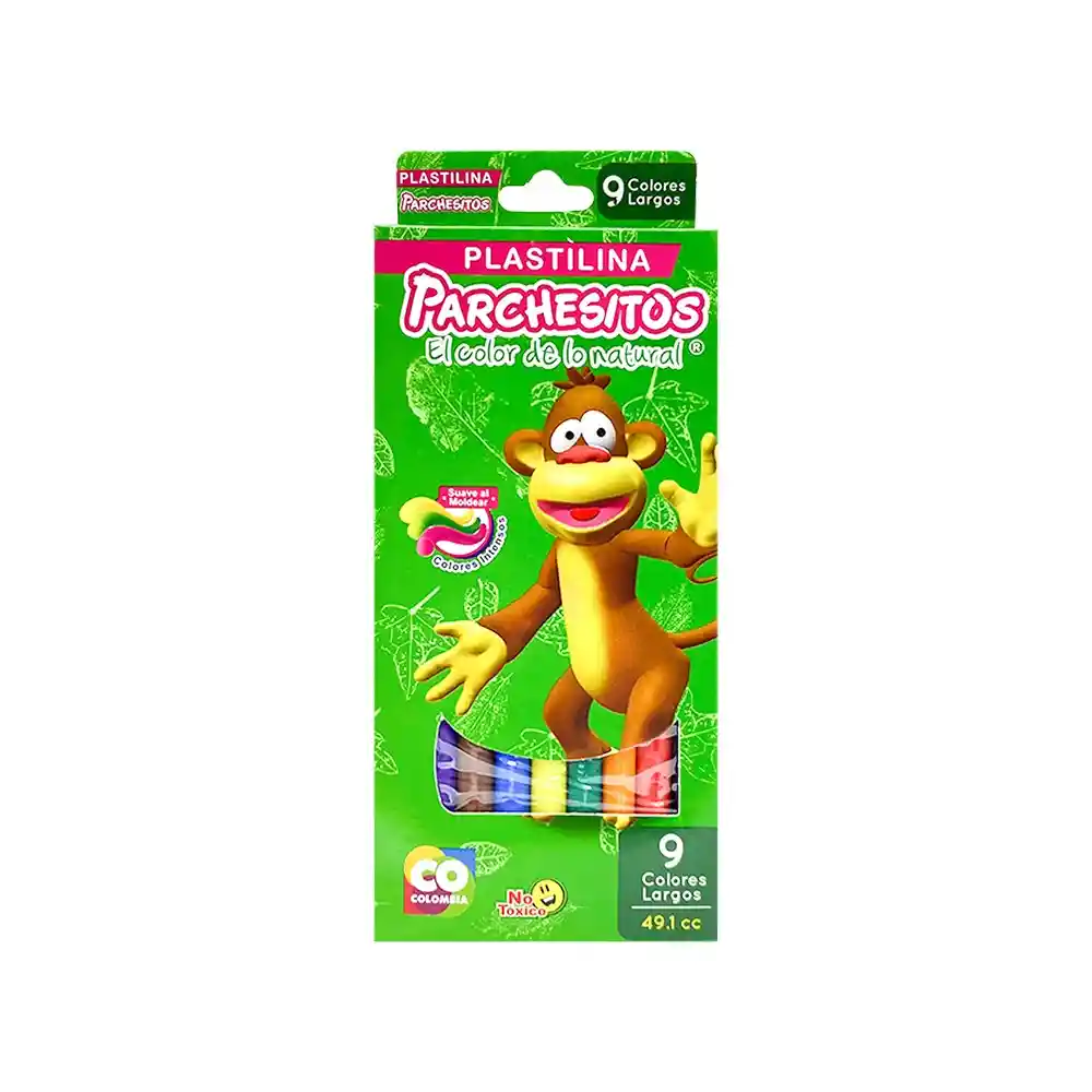 PLASTILINA LARGA PARCHESITOS X9, COLORES VIVOS Y TEXTURA SUAVE, IDEAL PARA MANUALIDADES, MODELADO Y USO ESCOLAR.