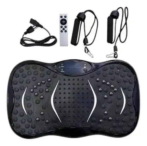 - Ejercicio eficiente: Tonifica y fortalece músculos con sus vibraciones de alta intensidad. - Relajación integrada: Disfruta de tus canciones favoritas gracias al altavoz USB mientras te ejercitas. - Ahorro de espacio: Diseño compacto y portátil para usar en cualquier lugar. - Trabajo de cuerpo completo: Incluye bandas de resistencia para ejercicios de brazos y parte superior. - Versatilidad personalizada: Ajusta entre 99 niveles de velocidad y elige entre 5 programas automáticos según tus objetivos.