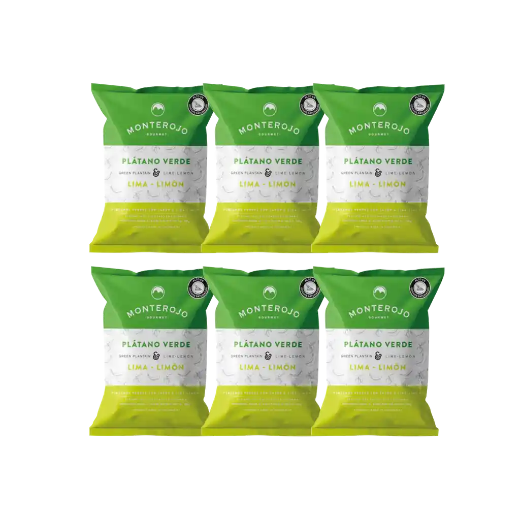 Irresistibles chips de plátano verde con la combinación perfecta de lima limón que te llevan a un nuevo horizonte de posibilidades en el mundo del sabor. Sin grasas trans, sin colesterol y sin gluten. Ideas para combinar: Pasabocas, sánduches, hamburguesas, entre otros. Presentación: Bolsa de 35gr x6 Und.