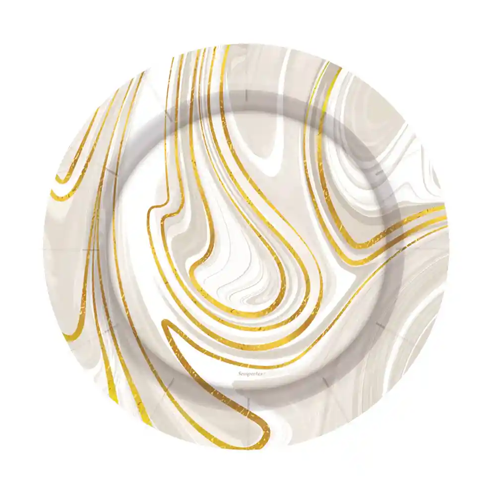 Plato 7" Redondo Marmoleado Blanco Dorado X 8 Unidades Sempertex