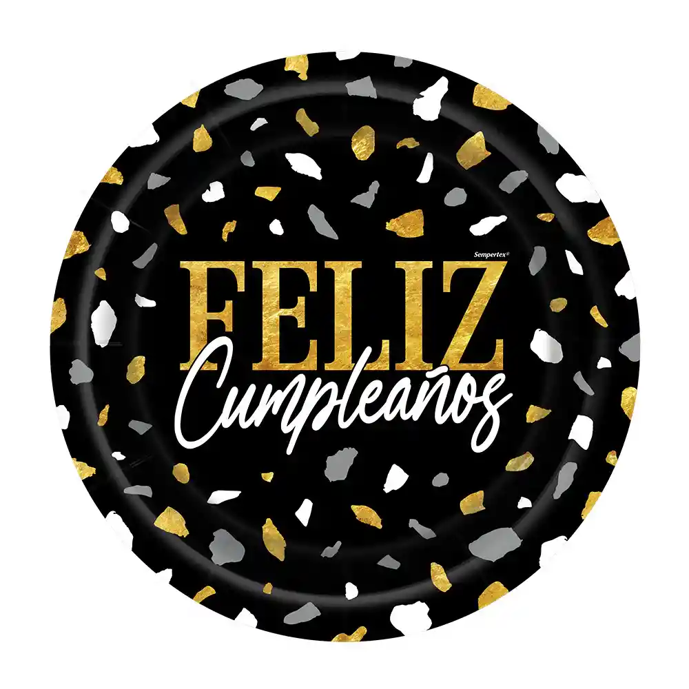 Plato 7" Redondo Terrazo Dorado Negro X 8 Unidades Sempertex