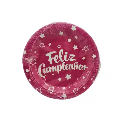 Plato de Cartón con mensaje de feliz cumpleaños fucsia neón