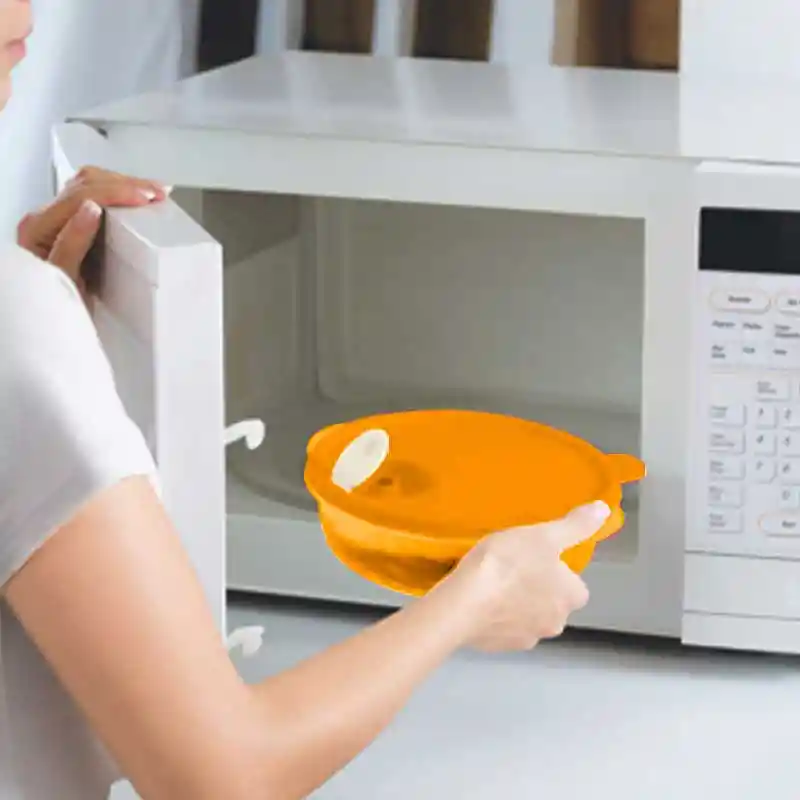 De la línea de Microondas este contenedor ideal para que guardes y lleves tus alimentos, elaborado en plástico atóxico resistente a cambios de temperatura, por lo cual es posible conservar la comida en el refrigerador y luego calentarla de forma segura en el horno microondas, cuenta con un sello hermético o tapa que tiene una válvula de escape de vapor, tiene 3 divisiones para que tu comida no se mezcle. No tiene empaque de silicona alrededor del sello que permita la acumulación de bacterias. Para llevar al horno microondas destapa, superpone el sello encima del recipiente, levanta la válvula y calienta. Enjuagar siempre los Micro flash con agua fría después de su uso, para evitar la acumulación de olores fuertes o manchas. Medidas: 1L - Ø 19.5 x 6.5 cm de alto. Producto plástico libre de BPA.