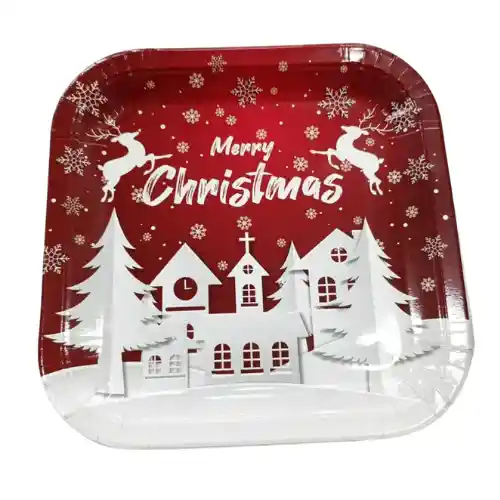 PLATO CUADRADO 23CM ESTAMPADO NOCHE NAVIDAD X10
