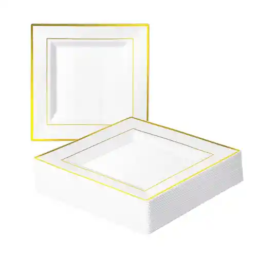 PLATO DE LUJO CUADRADO BORDE DORADO 19CM PAQUETE DE 6UND