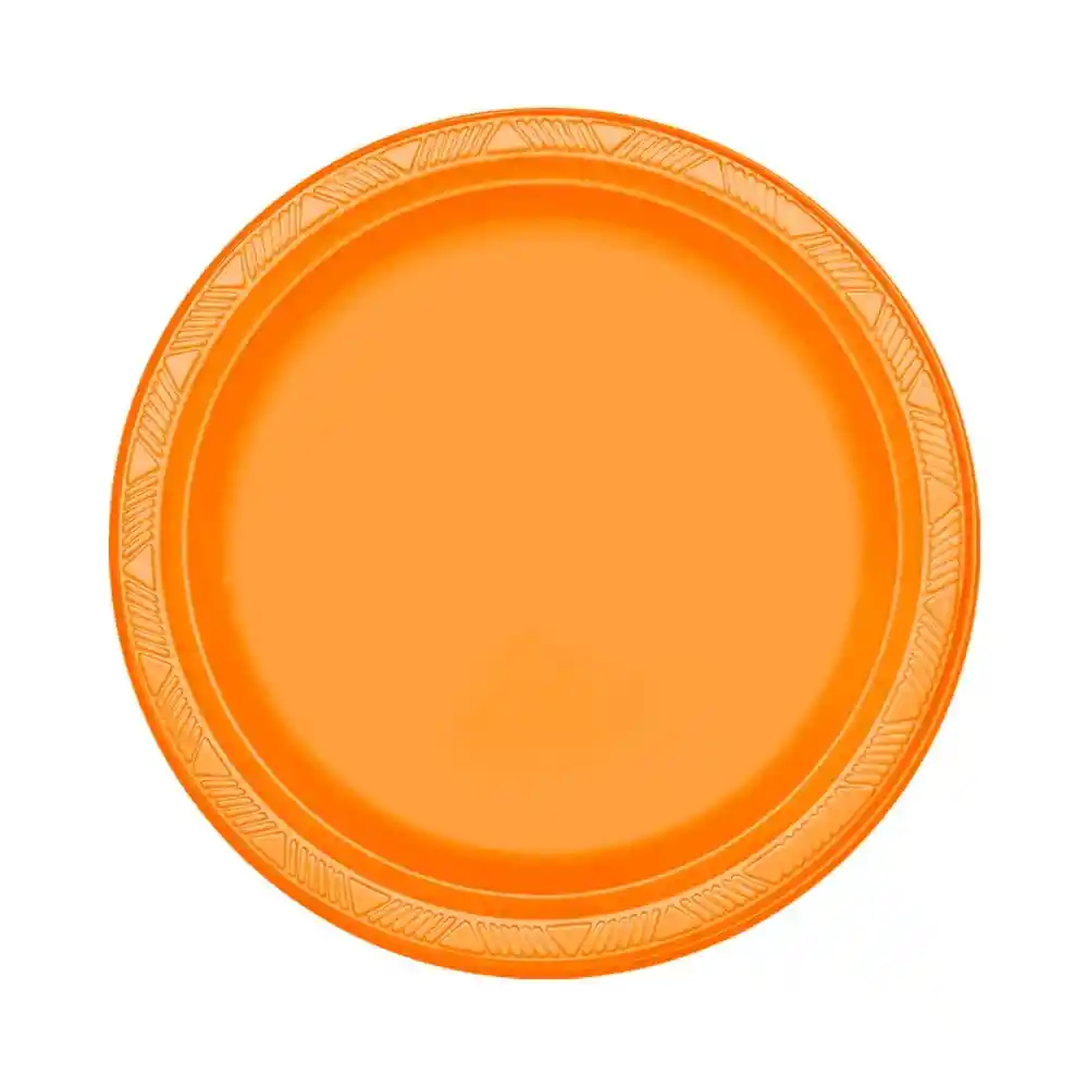 PLATO DESECHABLE DELUXE PLASTICO NARANJA GRANDE 9" 23 CM X 10. SEMPERTEX