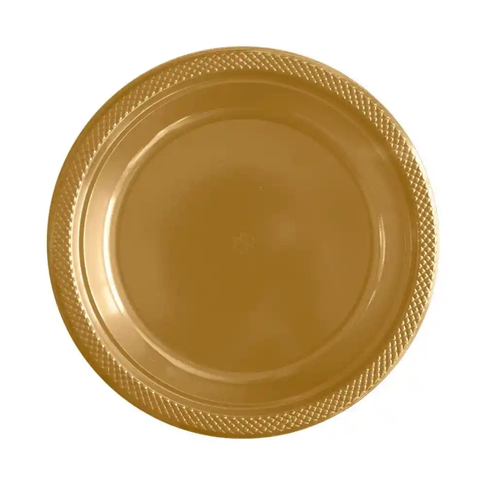 plato dorado, plato dorado grande, plato sempertex, plato biodegradable, plato desechable, plato grande, plato para comida, plato dorado sempertex, decoración dorada. Contiene 10 platos dorados de 9".