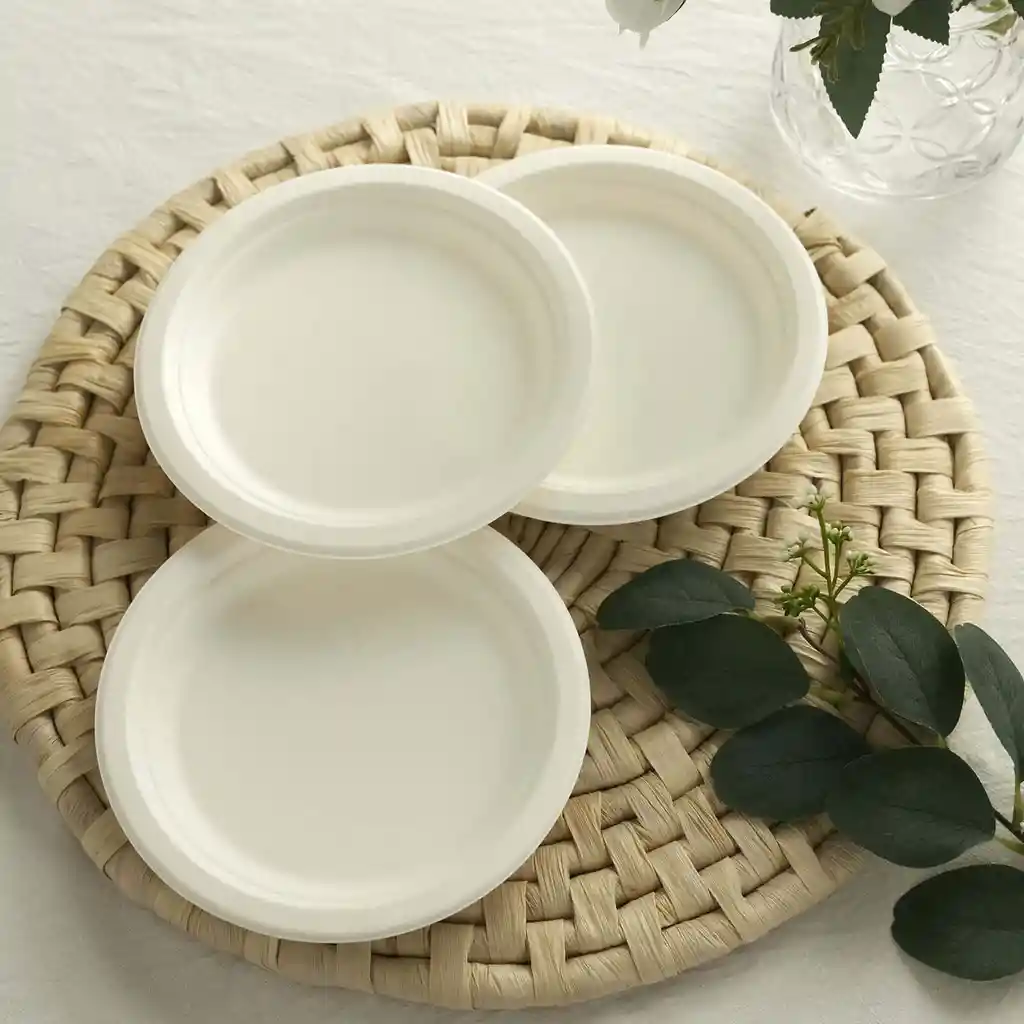 10 Platos Ecológicos Grandes - Desechables Perfectos para fiestas y reuniones sin contaminar. Se permite calentar en Microondas. Tamaño 26 cm Material: Pulpa de Caña de Azúcar Ecológicos, compostables y Biodegradables Se compostan en 90 días aproximadamente