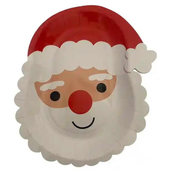 PLATO EN CARTÓN DECORACIÓN PAPA NOEL PAQUETE X 10 UNDS
