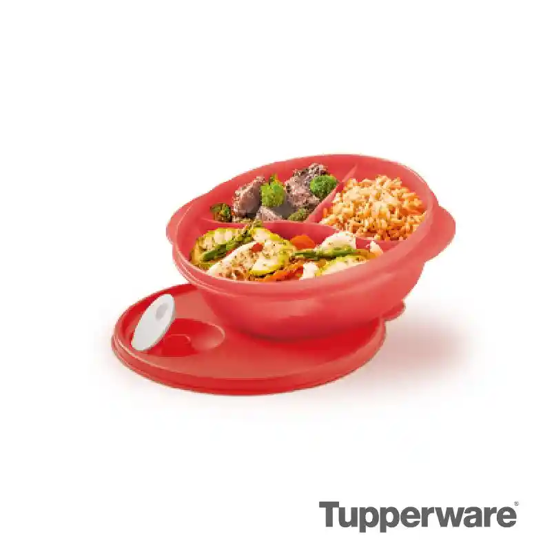 De la línea de Microondas este contenedor ideal para que guardes y lleves tus alimentos, elaborado en plástico atóxico resistente a cambios de temperatura, por lo cual es posible conservar la comida en el refrigerador y luego calentarla de forma segura en el horno microondas, cuenta con un sello o tapa que tiene una válvula de escape de vapor, tiene 3 divisiones para que tu comida no se mezcle. No tiene empaque de silicona alrededor del sello que permita la acumulación de bacterias. Para llevar al horno microondas destapa, superpone el sello encima del recipiente, levanta la válvula y calienta. Enjuagar siempre los Micro flash con agua fría después de su uso, para evitar la acumulación de olores fuertes o manchas. Medidas: 1L - Ø 19.5 x 6.5 cm de alto. Producto plástico libre de BPA.