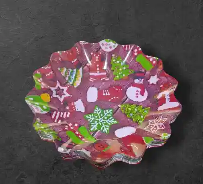 Plato navideño en forma de copo de Nieve con formas navideñas 27x27