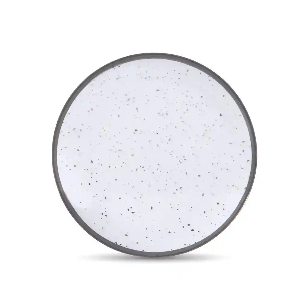Fabricado en melamina de alta calidad, un material reconocido por su extrema ligereza y resistencia superior a las roturas. Plato pando de 27 cm de diámetro, tamaño ideal para servir platos fuertes, almuerzos, cenas o aperitivos con comodidad. Diseño robusto y duradero que soporta el uso diario intenso sin astillarse, ideal para hogares con niños o eventos. Superficie lisa y no porosa que evita la absorción de manchas y facilita una limpieza rápida tras cada comida. Estructura apilable que permite optimizar al máximo el espacio de almacenamiento en sus gabinetes de cocina u organizadores. Diseño moderno con borde gris y acabado moteado que aporta un estilo contemporáneo y elegante a su mesa servida. Producto libre de BPA, garantizando que el consumo de sus alimentos sea totalmente seguro y libre de químicos nocivos. Muy fácil de transportar gracias a su peso ligero, siendo el compañero ideal para campings, paseos o picnics familiares. Versatilidad excepcional para ser utilizado tanto en el servicio de mesa formal como en el uso informal en el patio o balcón. Excelente relación costo-beneficio para dotar su cocina con piezas que mantienen su apariencia por mucho tiempo. Se entrega en un empaque protegido para asegurar que las piezas lleguen en perfectas condiciones hasta la puerta de tu hogar. Estos productos han sido ambientados, los accesorios adicionales no están incluidos y su color puede variar por la luz. . .