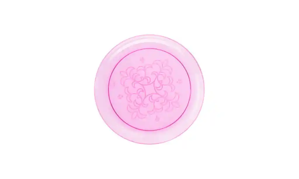 Plato Pequeño Transparente Rosado de plastico con estampado en el centro Medidas: "4" 16 cm Contiene: 6 Platos