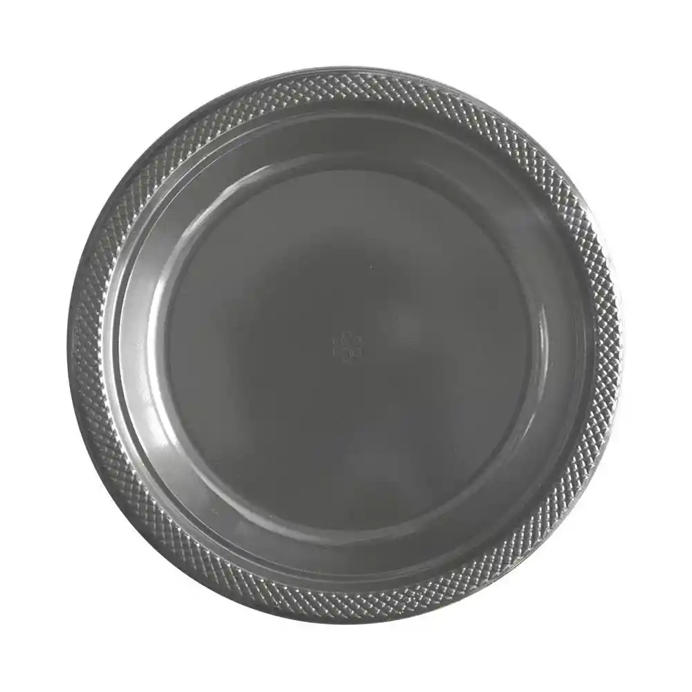 plato gris, plato plata, plato plateado grande, plato sempertex, plato biodegradable, plato desechable, plato grande, plato para comida, plato plata sempertex, decoración plata, plateado. Contiene 10 platos Plata de 9".