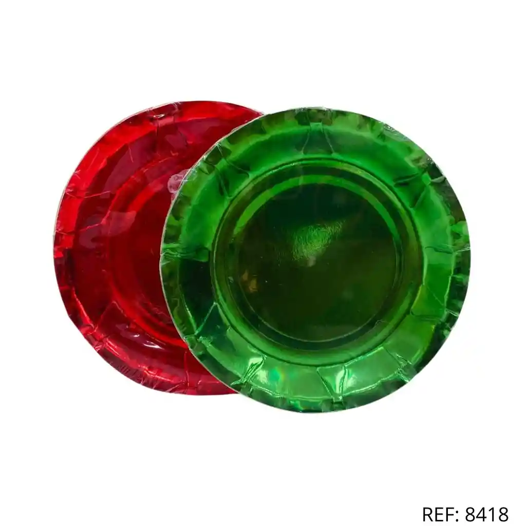 Platos de cartón circulares con acabado metalizado, perfectos para todo tipo de eventos. Resistentes y prácticos. Verde y Rojo confirma disponibilidad de color antes de comprar y selecciona tu preferencia en el pedido.X10UND