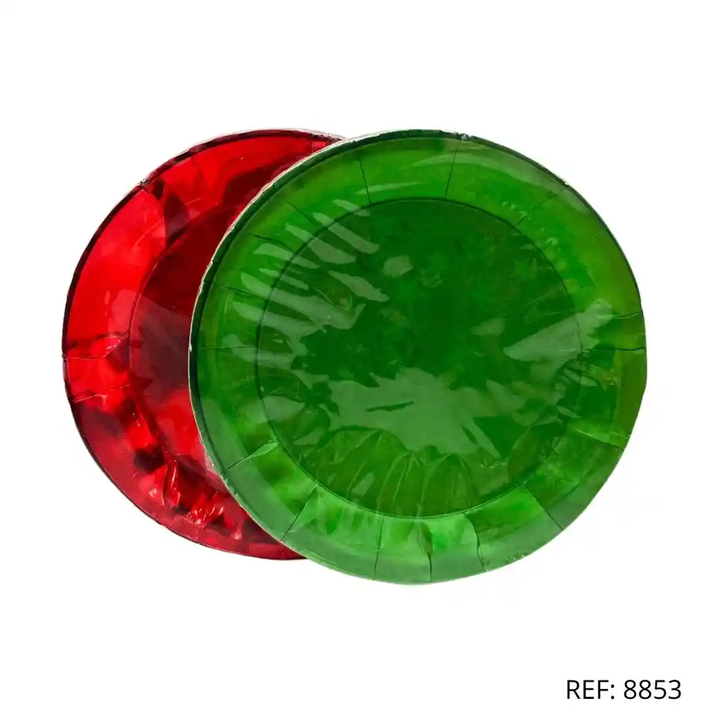 Platos de cartón circulares con acabado metalizado, perfectos para todo tipo de eventos. Resistentes y prácticos. Verde y Rojo confirma disponibilidad de color antes de comprar y selecciona tu preferencia en el pedido.X10UND 22CM
