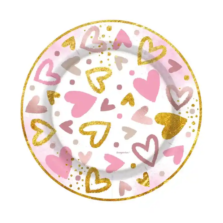 PLATO SEMPERTEX DESECHABLE DE CARTON 7" 18 CM CORAZONES BRILLANTES X 8 UNIDADES. Son un elemento indispensable para todas sus ocasiones pues le permitirá servir torta y otros pasabocas conservando los colores de su celebración.