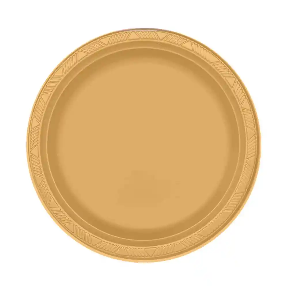 PLATO DESECHABLE DELUXE PLASTICO DORADO GRANDE 9" 23 CM X 10 UNIDADES SEMPERTEX EAN 7703340011707