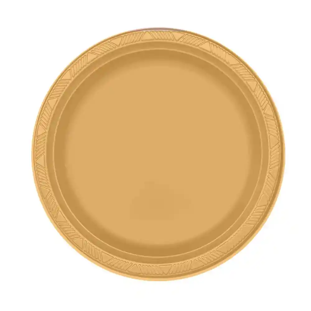 PLATO DESECHABLE DELUXE PLASTICO DORADO GRANDE 9" 23 CM X 10 UNIDADES SEMPERTEX EAN 7703340011707