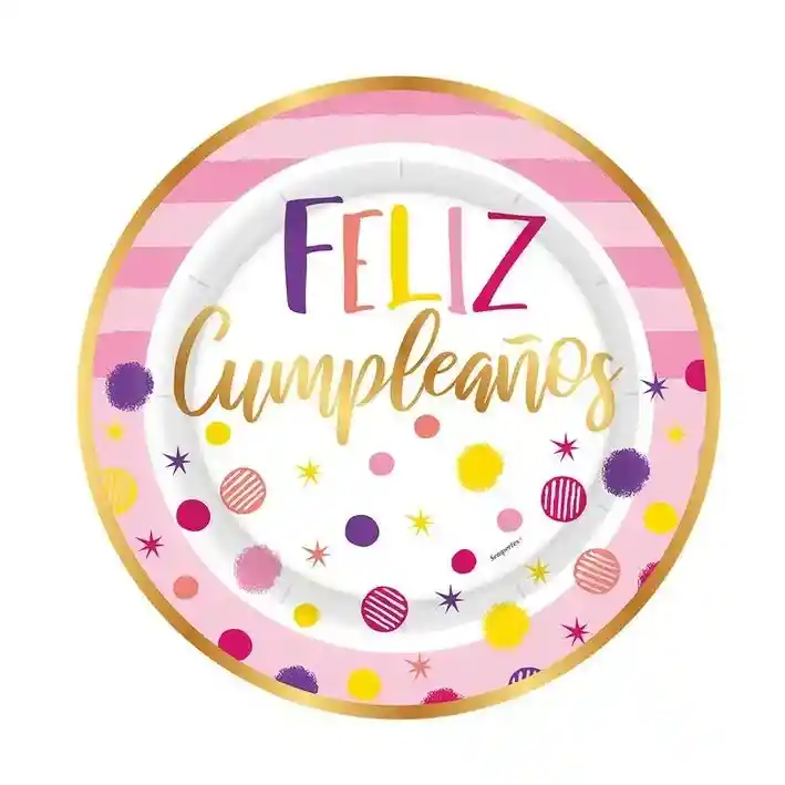 PLATO DESECHABLE DE CARTON 7" 18 CM FELIZ CUMPLEAÑOS DESTELLOS METALIZADO X 8 UNIDADES SEMPERTEX EAN 7703340026541