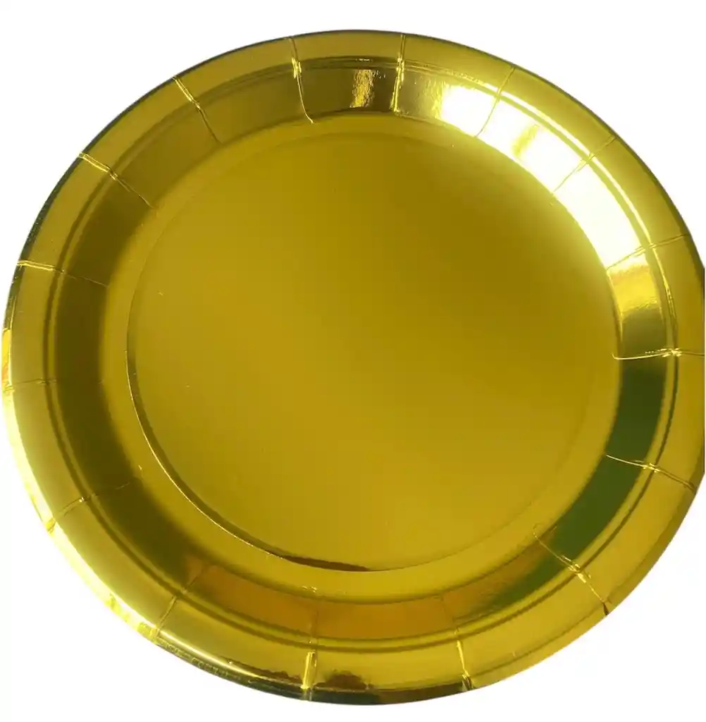 PLATOS DORADOS EN CARTÓN PAQ X 12 UNDS 23 CMS DE DIAMETRO