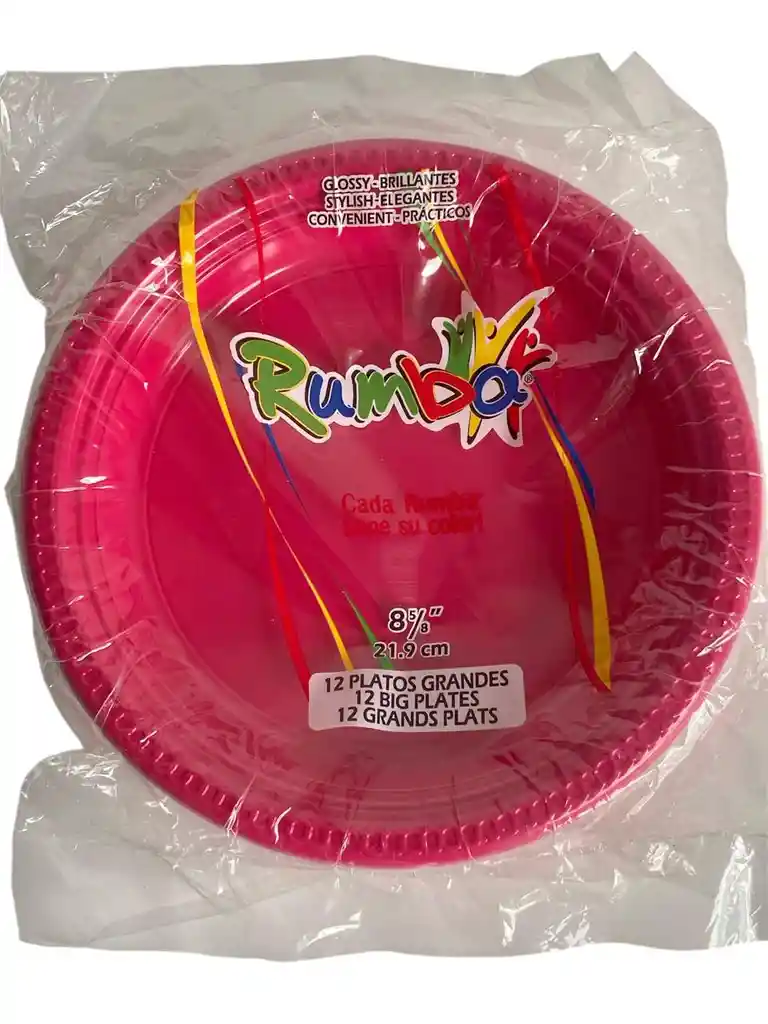PLATOS FUCSIA PLÁSTICOS 22 CMS X 12 UNDS PRÁCTICOS, ELEGANTES Y BRILLANTES