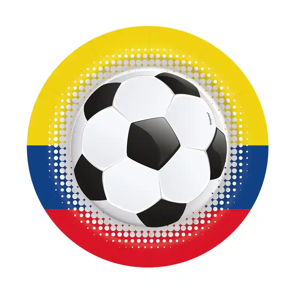 Paquete de platos x8 con estampado de futbol colombia Platos para fiesta Platos desechables Decoracion futbol colombia