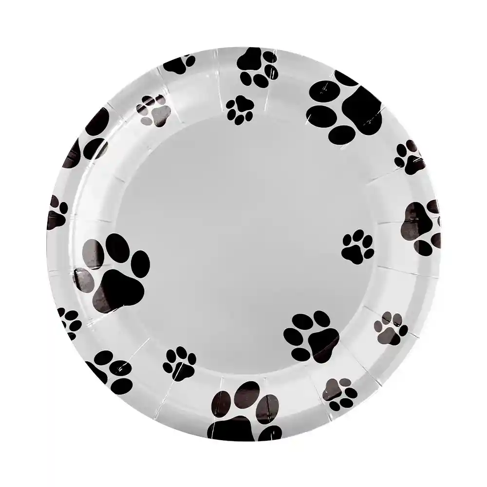 Paquete de platos x8 de 7 pulgadas blancos con estampado de huellitas Platos desechables Platos para fiestas