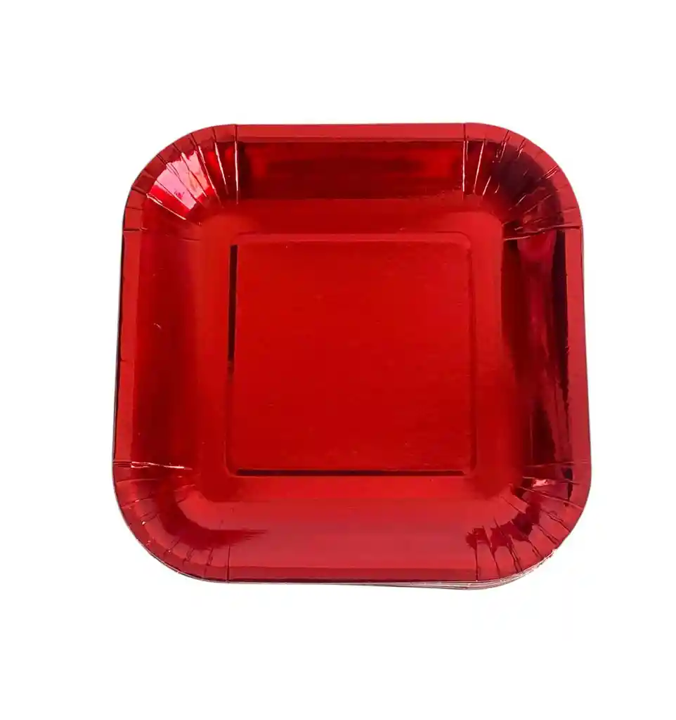 PLATO CUADRADO ROJO METALIZADOS PARA POSTRES, PORCIONES PEQUEÑAS