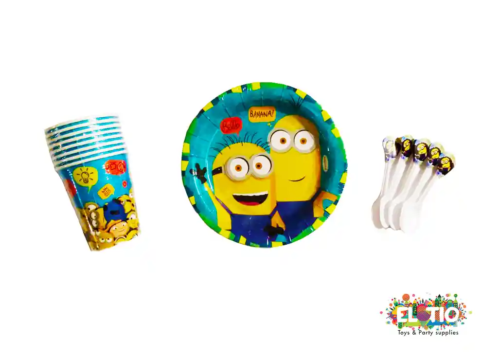 Desechables Minion incluye 8 Vasos 8 platos redondos y 20 Cucharas