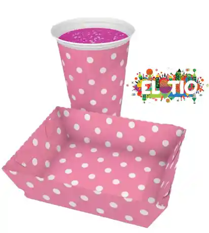 El desechables Rosados puntos Blancos para Torta, incluye: un paquete de platos para torta y un paquete de vasos plasticos