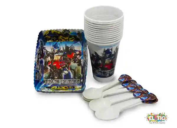 Desechables Transformers Incluye 12 vasos 12 bandejas y 20 cucharas