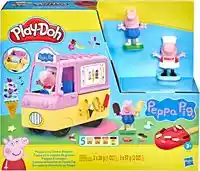 ¡Peppa Pig y su hermano George están listos para la diversión Play-Doh para niños a partir de 3 años! Con el camión de helados y las figuras de Peppa y George, este set permite que los niños exploren su creatividad con sus momentos favoritos de la serie. Las figuras caben dentro de la parte delantera del camión, el cual cuenta con moldes para crear postres imaginarios, y las ruedas traseras sirven para crear formas de sirope. Los niños también pueden crear conos de helado Play-Doh, paletas heladas y dulces con forma de ositos de peluche al encajar uno de los 3 grandes moldes en la parte trasera del camión y rellenándolo. Este set viene con 5 botes Play-Doh en los colores rojo, verde azulado, rosa, amarillo y marrón para mucha diversión con Peppa. ¡Este juguete creativo es ideal para fiestas o para jugar con amigos, y es un fantástico regalo de cumpleaños para todos los fans de Peppa!