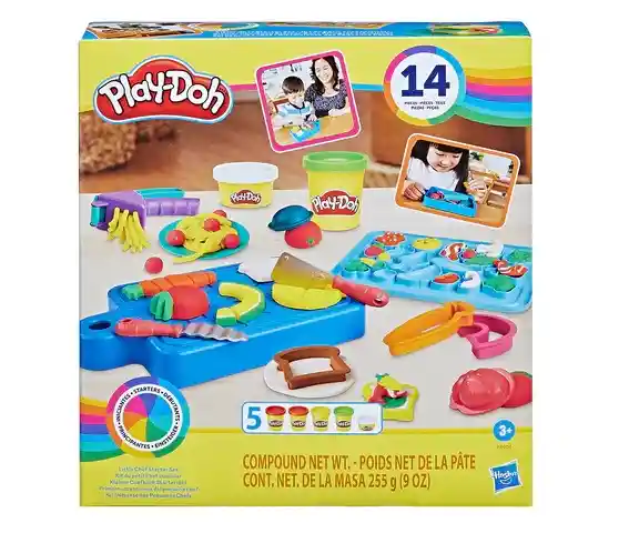 TENEMOS PUNTO FISICO EN LA CIUDAD DE CALI SET DE INICIO PARA EL PEQUEÑO CHEF PLY DOH INCLUYE 14 PIEZAS 5 PLASTILINAS