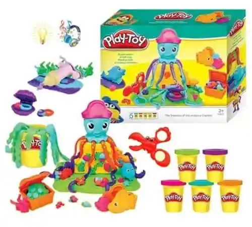 La caza del tesoro es un buen momento agitado con el pulpo malhumorado para comenzar la aventura marítima, simplemente equiparlo con un poco de plastilina de juego y gira la manivela para crecer largas piernas. al abrir la concha y cofres del tesoro para revelar moldes que pueden hacer anillos de perlas y doblones de oro, también hay muchos amigos del océano y accesorios para una diversión más imaginativa, forma un pez dorado con el molde de libro sled. Ice Corte con las tijeras de langosta para una diversión más imaginativa. Incluye 5 tarritos de plastilina