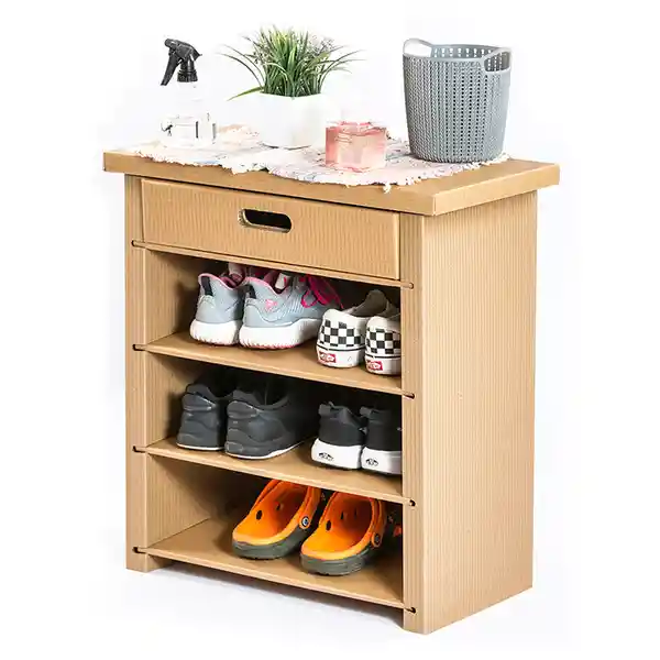 Organizador de Zapatos Con un Diseño Único. Mueble Para Zapatos Elaborado en Cartón Corrugado de Alta Resistencia Con Capacidad Para 6 Pares de Zapatos. Cuenta Con Una Resina Ecológica Que Ayuda a Repeler la Humedad y el Derrame de Líquidos Comunes. Podrás Armarlo y Desarmarlo de Forma Rápida y Fácil en Casa. Sin Necesidad de Usar Herramientas Especializadas. Mueble Amigable Con el Medioambiente. 95% Reciclado y 100% Reciclable. Dimensiones: 61 cm Ancho x 65 cm Alto x 32 cm Fondo. Peso: 4Kg Elaborado en Cartón Corrugado de Alta Resistencia. Capacidad Para 6 Pares de Zapatos. Capa Protectora Que Repele Líquidos y Humedad. Fácil de Armar. Producto Ecofriendly. Medidas: 61 cm Ancho x 32 cm Fondo x 65 cm Alto. Limpiar Con un Paño Húmedo. Soporta Hasta 7 Kg / 2 Kg Por Bandeja. Cuenta Con un Cajón y 3 Compartimentos