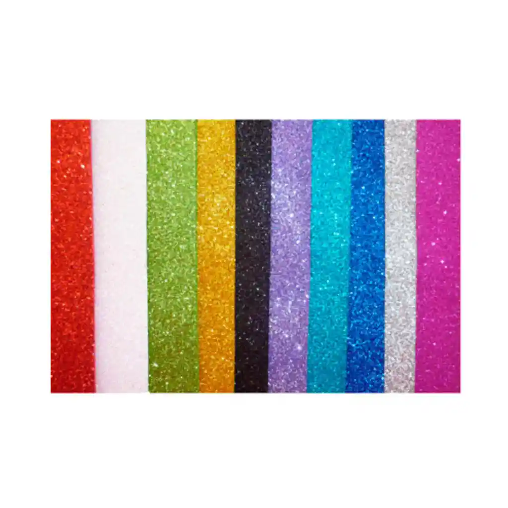 Foamy escarchado en pliego completo ideal para manualidades, proyectos escolares y decoración. Acabado brillante, liviano y flexible.