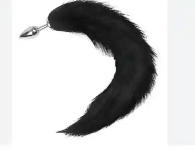 Plug en acero inoxidable, Cola en material sintético Color Negro • Longitud total de la cola con el plug: 45, 8 cm • Diámetro del plug en su punto más ancho: 2, 7 cm