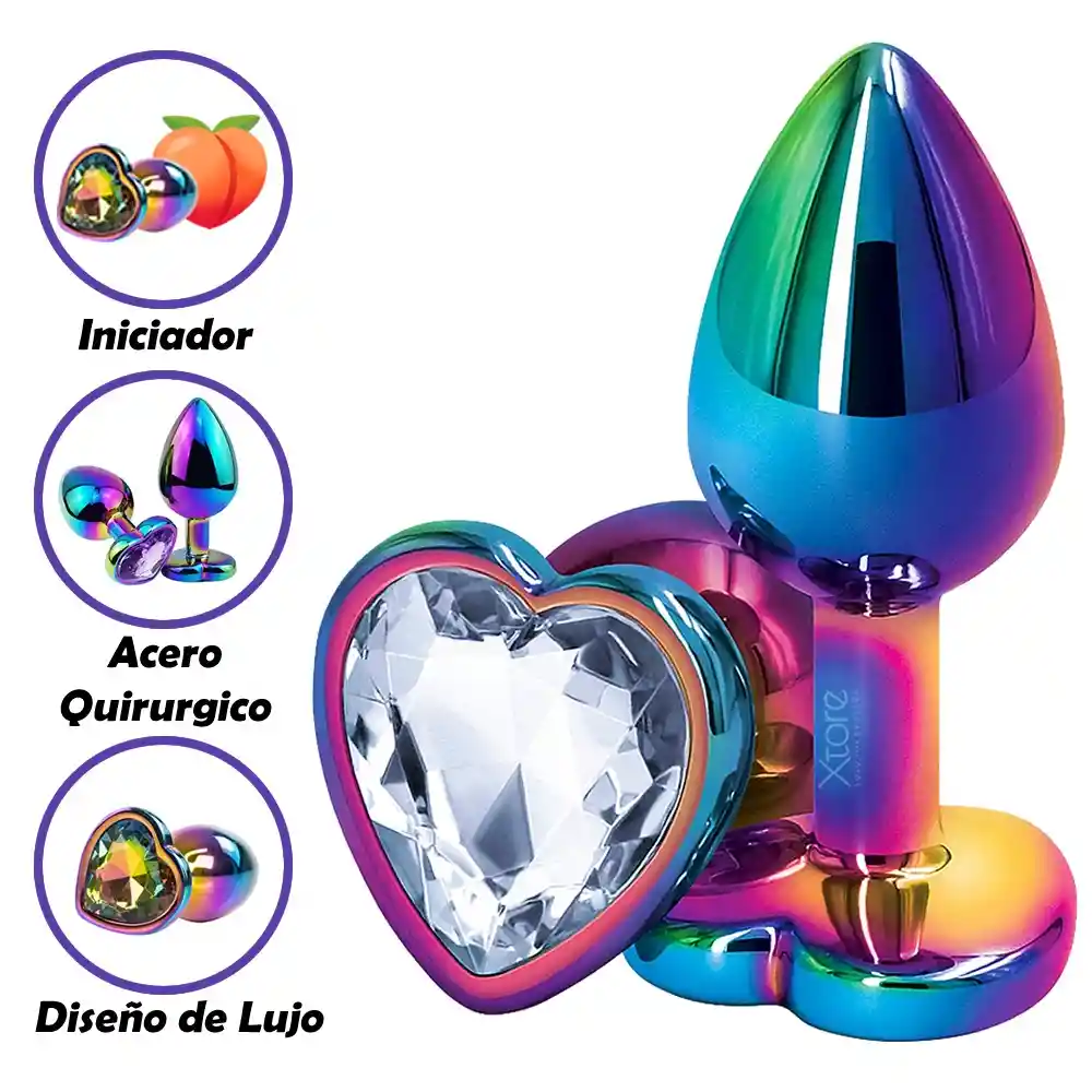 El Onix Plug Anal Solari Tornasol es un cautivador y cómodo juguete anal diseñado para proporcionar una experiencia de placer excepcional Este plug anal está fabricado con metal de alta calidad, lo que garantiza su durabilidad y resistencia. Lo que distingue al Onix Plug Anal Solari Tornaso es su deslumbrante efecto tornasol. Sus colores cambiantes y brillantes le dan un aspecto mágico y fascinante, añadiendo un toque de encanto a tus momentos íntimos. Este plug anal también presenta una base en forma de corazón, lo que lo convierte en una opción romántica y estéticamente atractiva. La base en forma de corazón no solo brinda seguridad durante su uso, sino que también agrega un elemento de estilo y elegancia. Este plug anal ha sido diseñado pensando en tu comodidad. Su forma cónica y suave facilita una inserción gradual y placentera, mientras que el material de metal de alta calidad brinda una sensación de peso y estimulación intensa Material Material Metálico Medidas • Alto: 7 cm • Ancho: 3 cm • Profundidad: 4cm Recomendaciones de Uso Para una experiencia más placentera, es ideal que el uso de este juguete sea con lubricantes a base de agua. Recomendamos el Gel Lubricante Íntimo Natural. No se deben usar lubricantes de silicona con juguetes de silicona. Podrían sufrir daños irreversibles. Peso 45 gr Limpieza Antes de usar el juguete por primera vez, y después de cada uso, este debe ser limpiado para reducir el riesgo de infecciones, mantener la higiene adecuada y evitar el deterioro rápido del juguete. Recomendamos un producto especial para limpieza óptima como los Limpiadores para Juguetes. Garantía 1 año