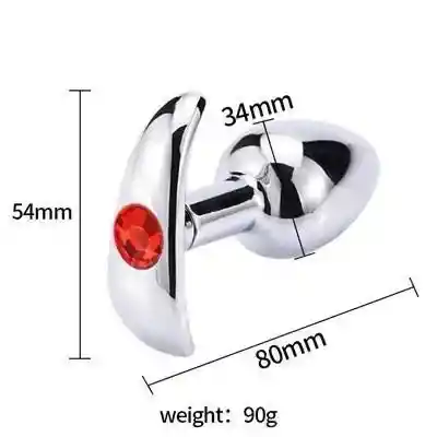 Plug anal metálico con joya cambiable Este plug anal es igual a los clásicos en la parte insertable, hay una diferencia en comparación a los demás y es que la parte de la base puede cambiarse, tiene un sistema de rosca que permite atornillarlo, es muy importante que siempre que uses el plug tenga base para poder retirarlo luego de la inserción, es más seguro y más fácil poder liberarlo. Además los plug anales al ser en acero inoxidable son juegues muy higiénicos y se pueden lavar con mucha facilidad. Mediano: 8, 0 cm de longitud, 3, 4 cm de diámetro, 6, 6 cm base • MATERIAL Acero inoxidable