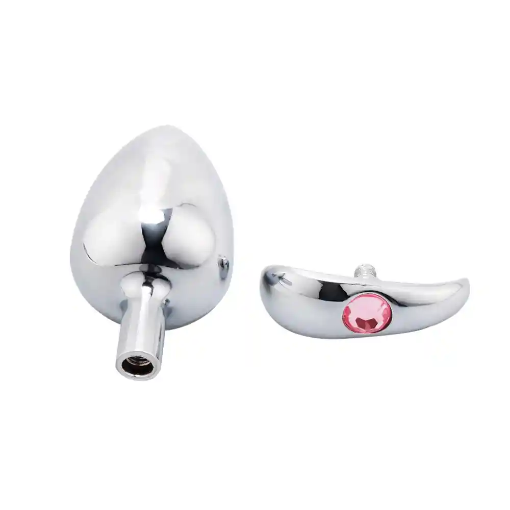 Plug anal metálico con joya cambiable Este plug anal es igual a los clásicos en la parte insertable, hay una diferencia en comparación a los demás y es que la parte de la base puede cambiarse, tiene un sistema de rosca que permite atornillarlo, es muy importante que siempre que uses el plug tenga base para poder retirarlo luego de la inserción, es más seguro y más fácil poder liberarlo. Además los plug anales al ser en acero inoxidable son juegues muy higiénicos y se pueden lavar con mucha facilidad. Este iniciador anal es la mejor opción para comenzar en el mundo del sexo anal, es de un material que desliza fácilmente, sin causar molestias y provoca una gran sensación de placer, ideal para el juego previo ya que ayuda a dilatar el ano. El Plug Anal Doom ¡Base cambiable!