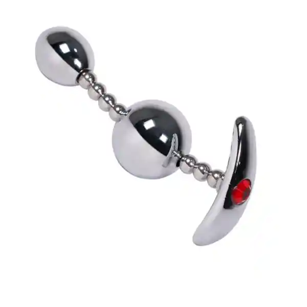 Plug Anal Double Egg Plug metálico con pequeños nódulos en su cuerpo y dos esferas, una en la mitad y otra en la punta que complementa el placer de la penetración. Características: Material: Acero inoxidable Color: Gris, joya roja Largo total: 11.6 cm Largo insertable: 10,6 cm Bola 1: 2.2 cm Bola 2: 3.1 cm Peso: 93 gr Cuidado y limpieza: Jabón suave o limpiador de juguetes. Confidencialidad: Tus pedidos se envían en una caja o sobre totalmente sellado y opaco sin ningún tipo de marcas externas. Para nosotros es muy importante tu privacidad.