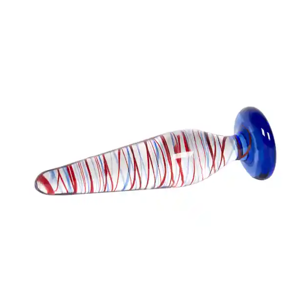 Plug Anal de Vidrio Con Pequeñas Líneas Rojas y Azules Por Todo el Cuerpo. Material Completamente no Tóxico