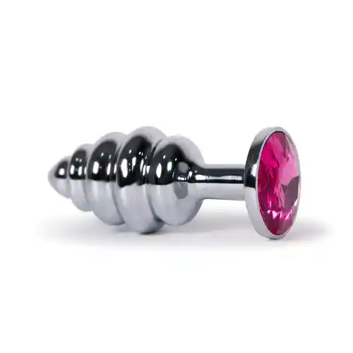 Plug metálico con forma de tornillo y joya en su base. Características: Material: Acero inoxidable Color: Gris, joya Fucsia Largo total: 7.2 cm Largo insertable: 6.5 Diámetro: 2.8 cm Peso: 51gr