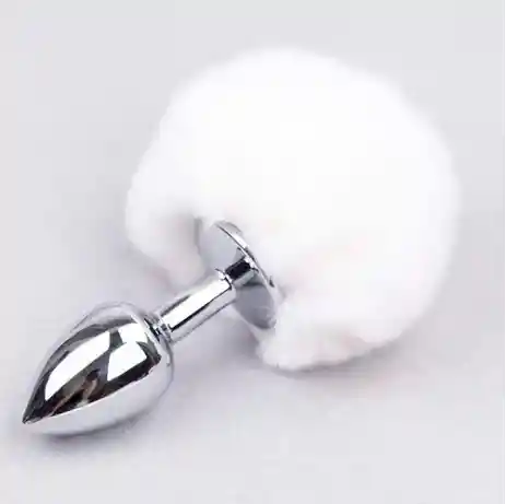 Cola de zorro sintética con plug anal metálico incorporado, para juegos de rol, fetichistas y cosplay. Características: Material: Acero (plug) y fibra sintética imitación piel (cola). Color: Blanco Largo total: 13 cm Largo del plug: 4.3 cm Largo insertable: 3.7 cm Diámetro: 2.7 cm Peso: 55 gr