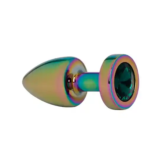 Plug anal metalico holográfico con joya color verde en la base perfecto para personas. Características: Material: Acero (plug) Largo total: 6 cm Largo insertable del plug: 5.2cm Color del plug: Holográfico Color de la joya: Verde Diámetro: 2.3.9cms. Peso: 37 gr Cuidado y limpieza: Jabón suave o limpiador de juguetes. Confidencialidad: Tus pedidos se envían en una caja o sobre totalmente sellado opaco sin ningún tipo de marcas externas. Para nosotros es muy importante tu privacidad.