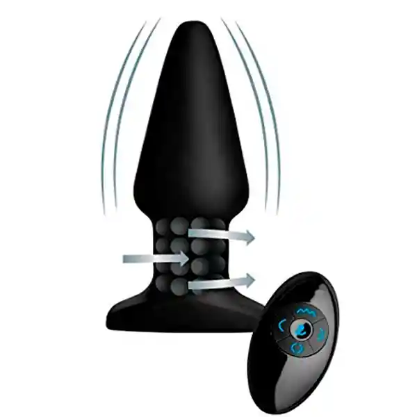 ¡Plug Anal Con Vibración y Perlas Rotativas Para Estimulación Anal¡Plug en Silicona Grado Médica Con Una Punta Cónica y Eje Liso Que Facilitan la Penetración. Sus Perlas Rotativas Estimularán la Cavidad Anal Haciéndolo Más Placentero. Elige Entre 8 Modos de Vibración y 5 Modos de Rotación Con Velocidades y Patrones Perfectos Para el Grado Que Desees Disfrutar. Características: - Ancho: 4.5 cm - Largo: 13 cm - 60 Minutos de Vibración Continua- Control Remoto